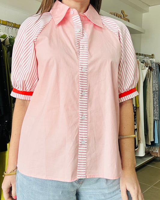 Pink Stripes Color Block Top