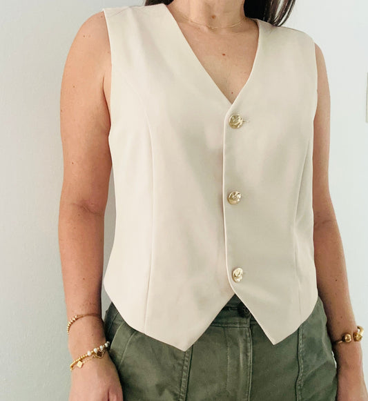 Ligh Taupe doted fringe Linen Top