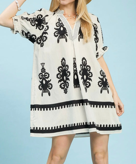 V-Neck Black & White Tunic Dress