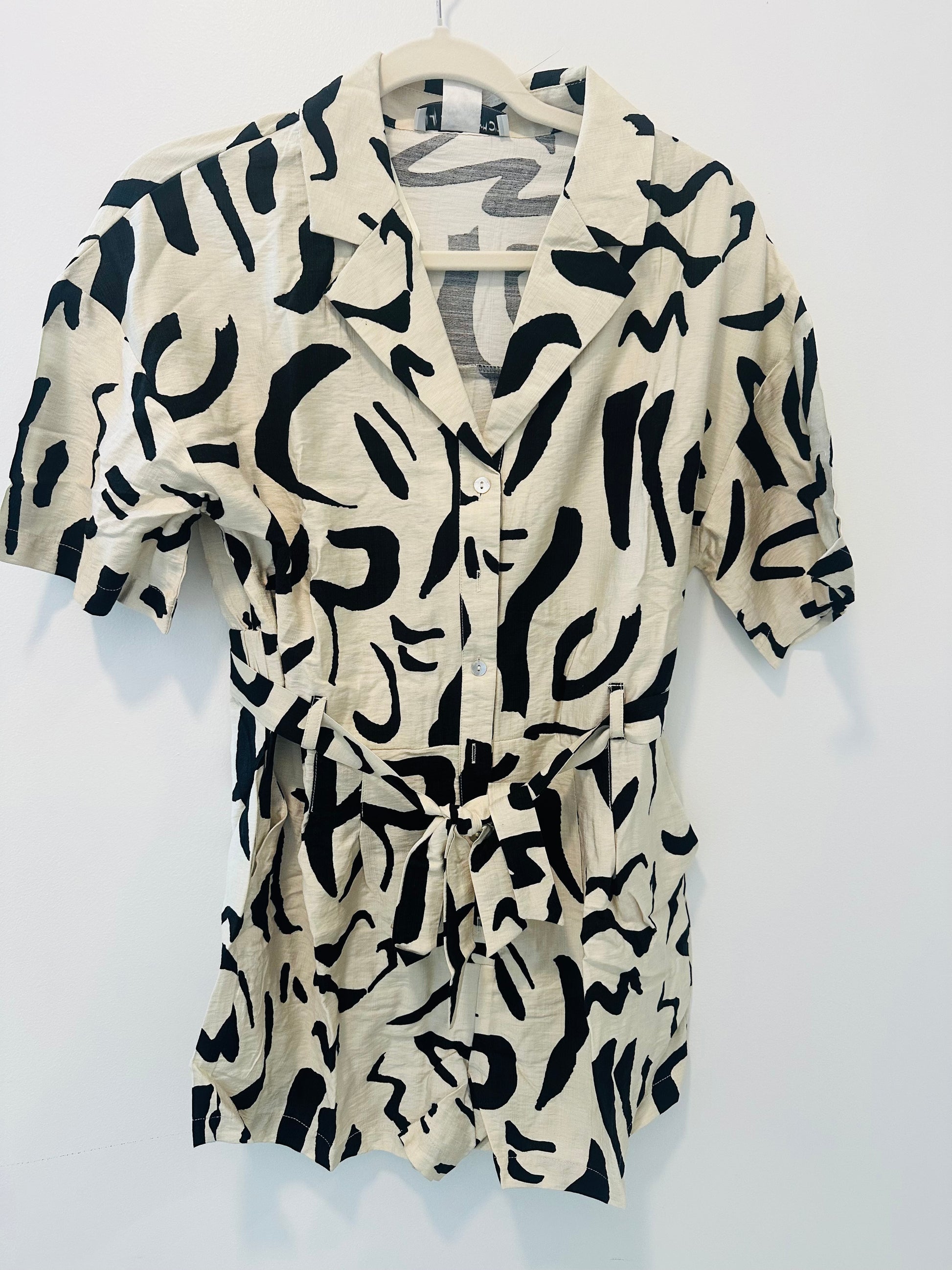 Black Cream Print Romper