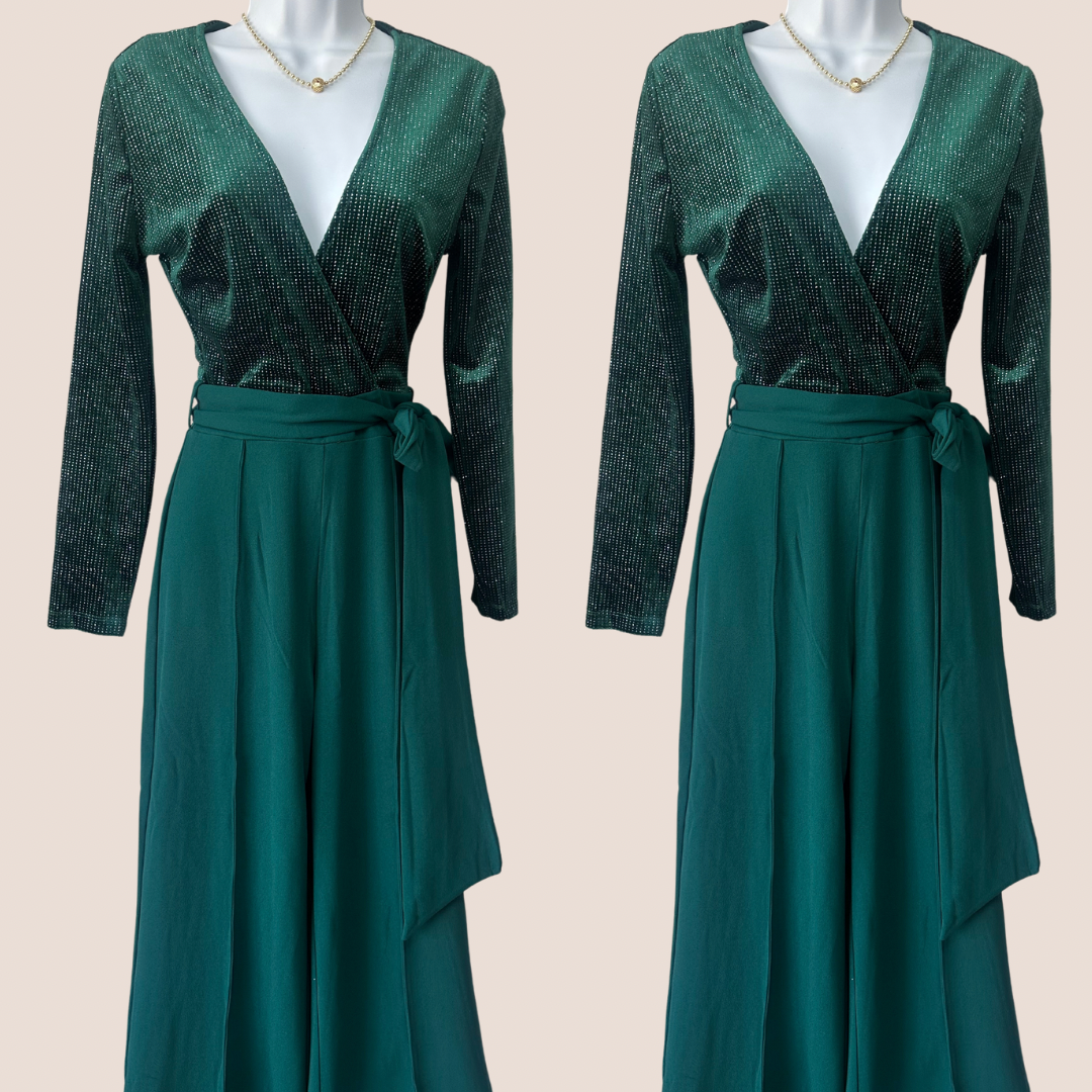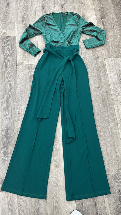 Hunter Green Velvet Top with silver details Jumpsuit